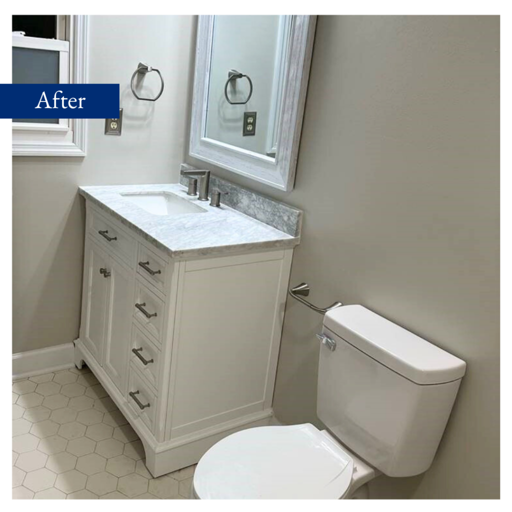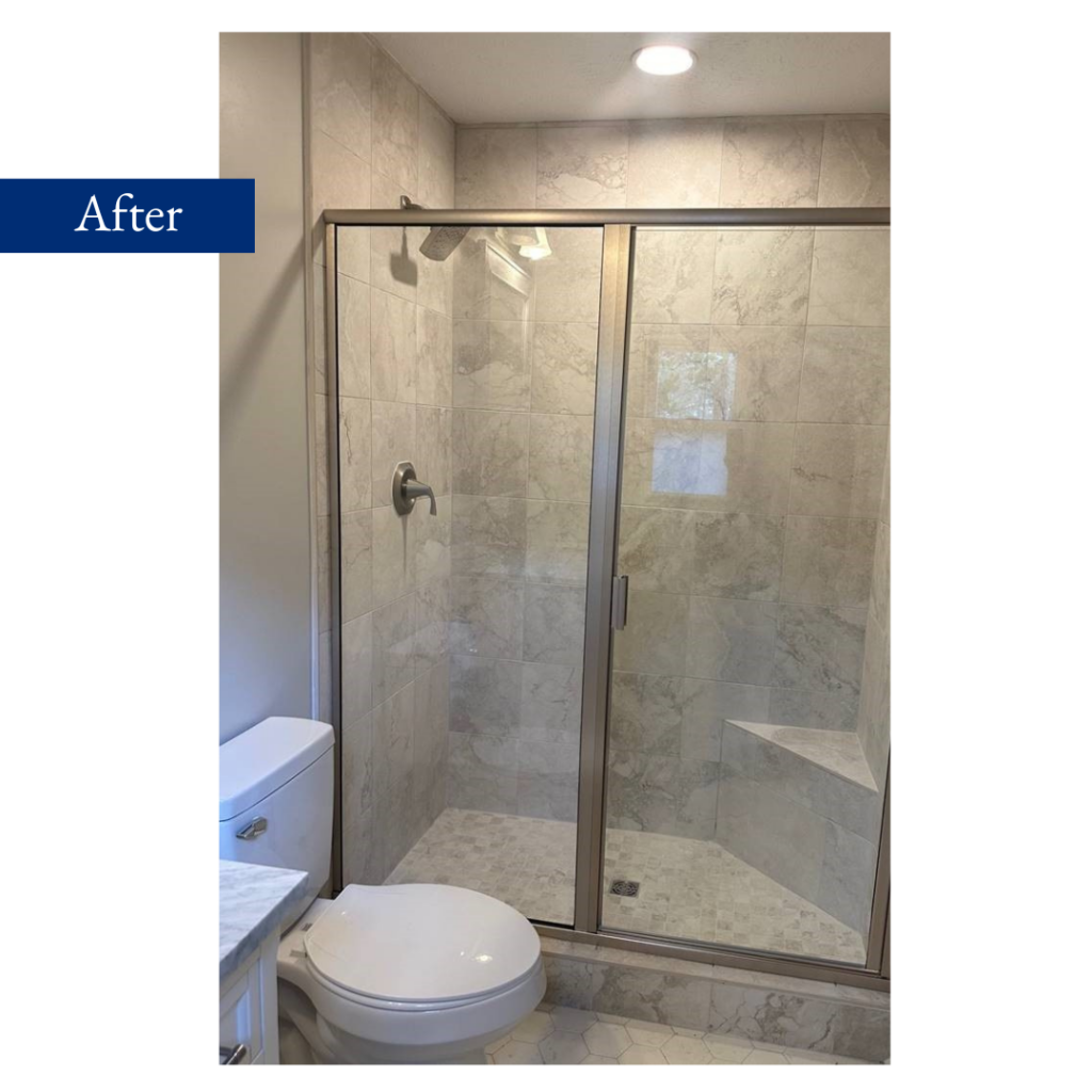 So, picture this: you walk into your bathroom, and it’s like stepping back in time. The narrow shower wasn’t an ideal space, the vanity was outdated, the laminate countertop needed to be replaced, and the room needed a freshening up with a new coat of paint. That was this homeowner’s bathroom—a peek from the past that desperately needed a makeover.