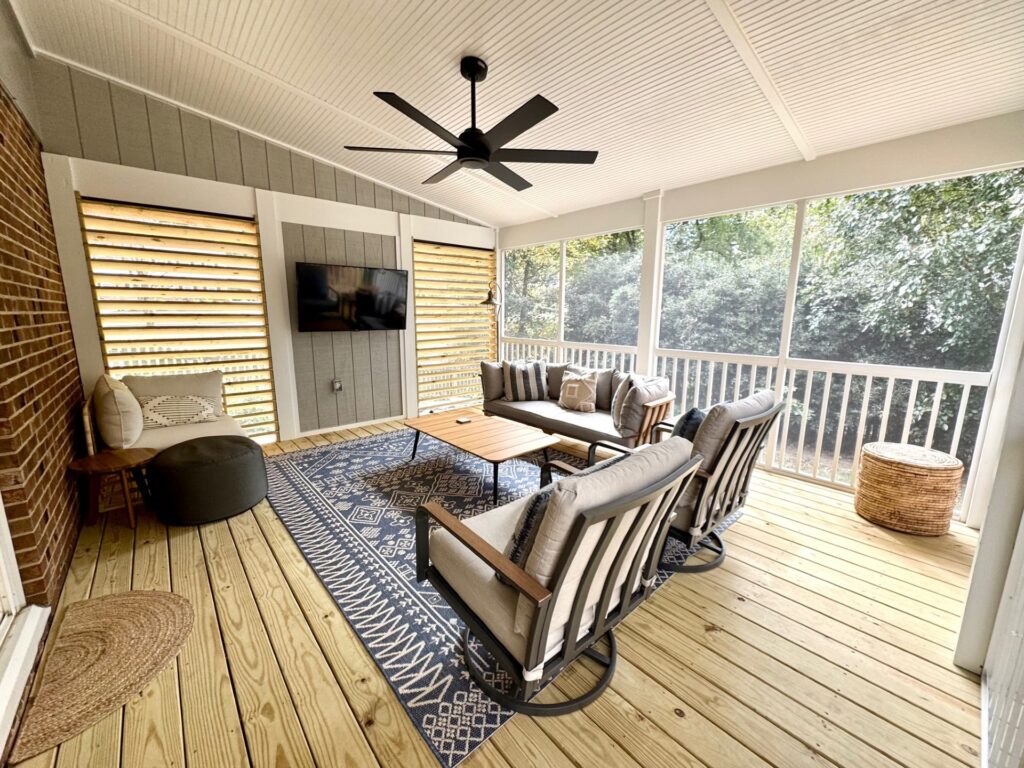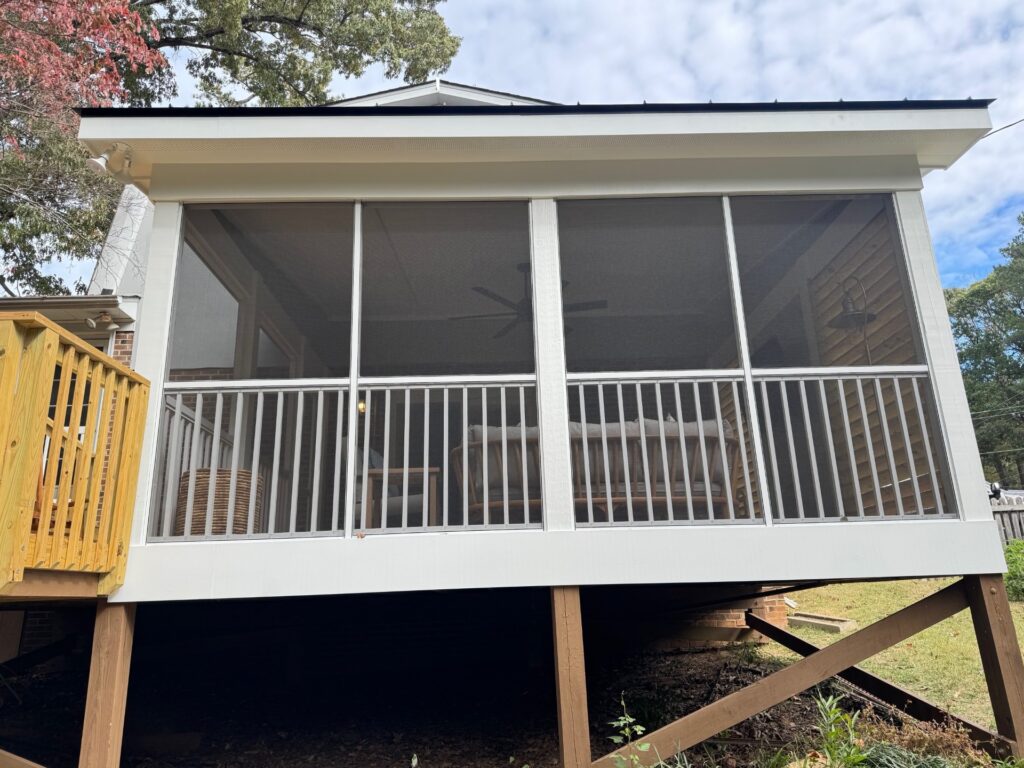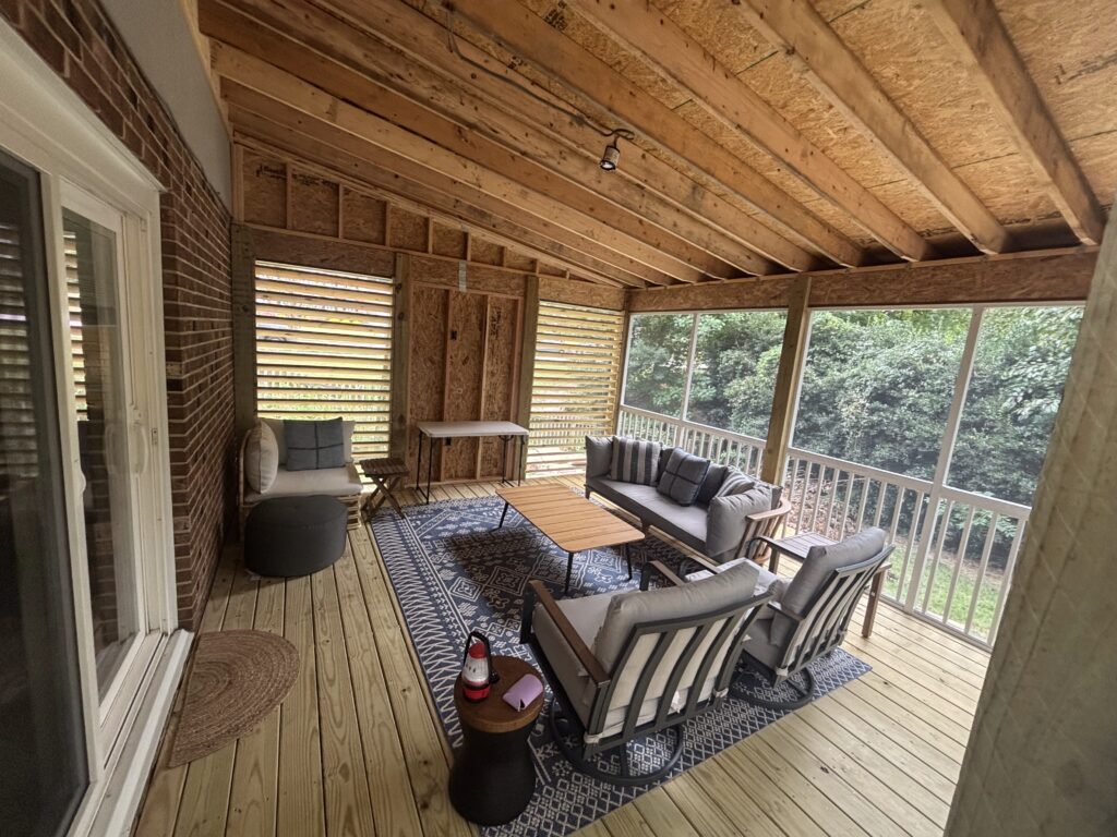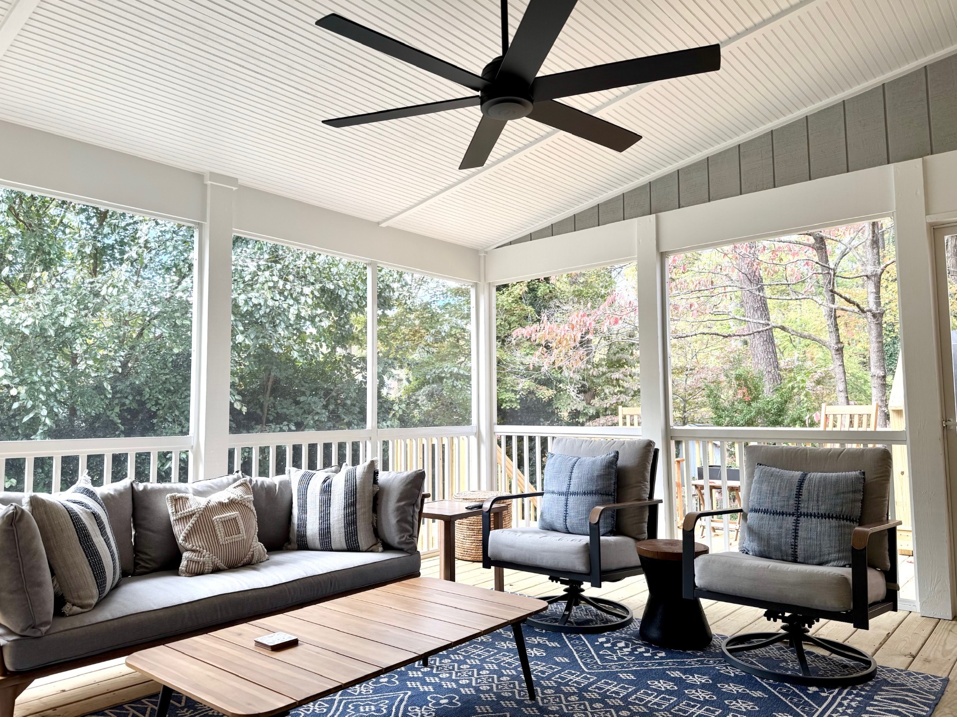 Extended the roofline to add a covered, screened-in area – perfect for lounging without getting bugged.
