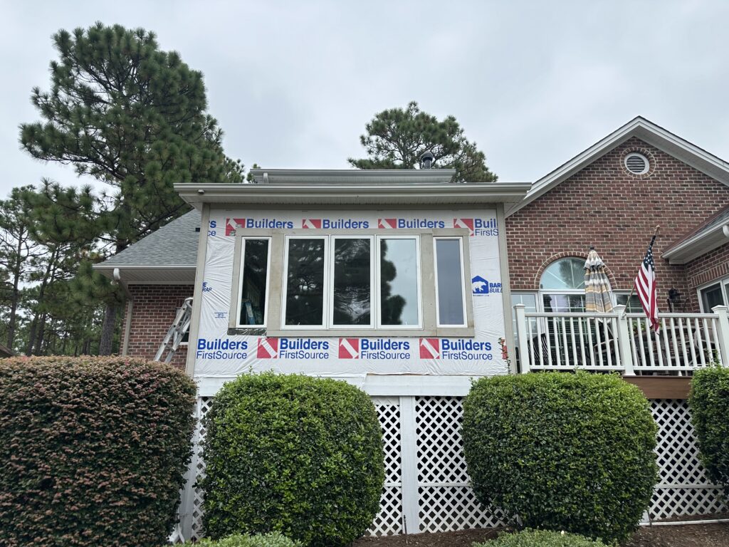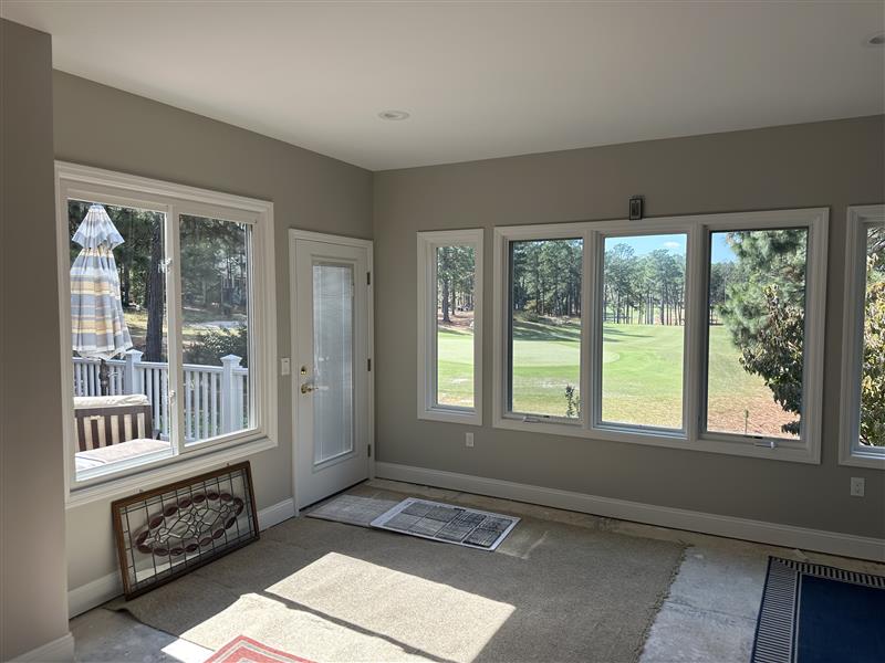 We swapped out the old porch windows for stunning picture windows, giving the homeowners a front-row seat to their gorgeous golf course views.