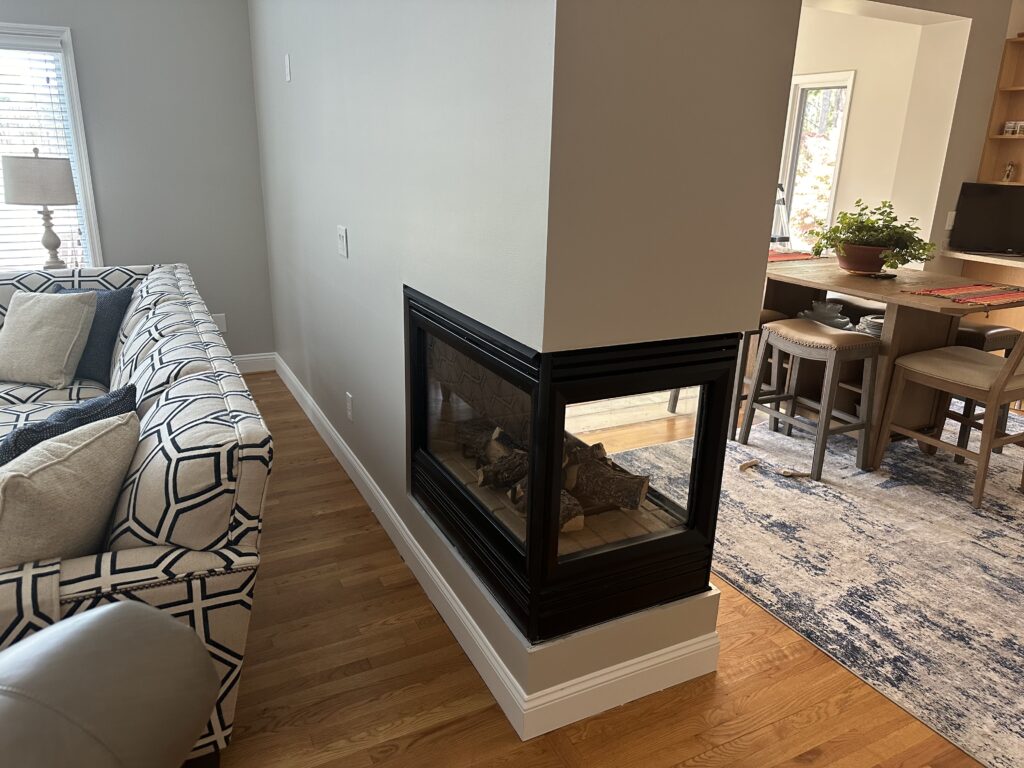 While we were at it, we gave the fireplace a modern update that fits seamlessly with the home’s refreshed look. The result? A space that feels cozy, current, and completely custom.