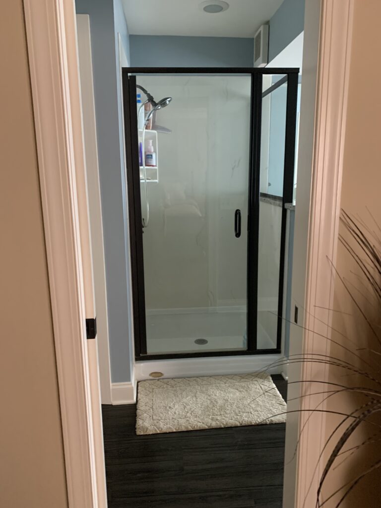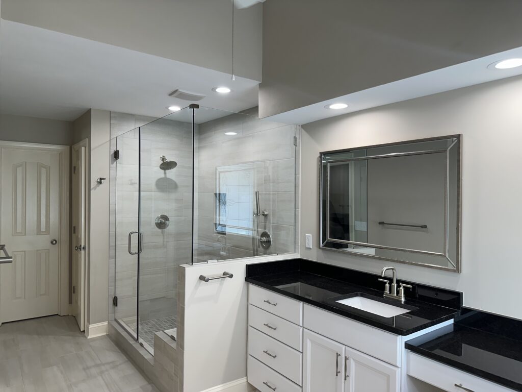 Our homeowners’ primary bathroom was living large in its 90s glory days. We’re talking about a big corner jetted tub (that no one ever used) and a fiberglass shower insert that had seen better years. The space worked… but just barely. It didn’t feel modern, it didn’t feel functional, and it certainly didn’t match the rest of their beautiful home.