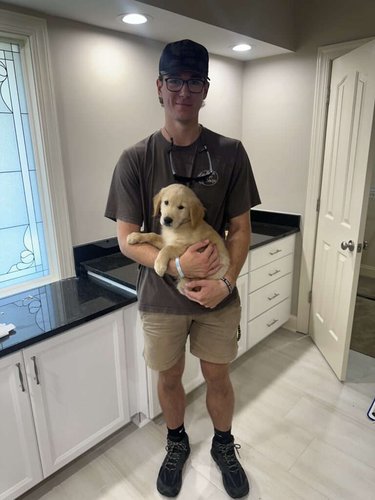 The real highlight of this project? Meeting Chance, the homeowners’ new golden retriever puppy. Between demo days and tile installs, we got a few tail wags and sloppy kisses that made the whole process even sweeter. (We like to think he gave the finished bathroom two paws up.) 🐶✨