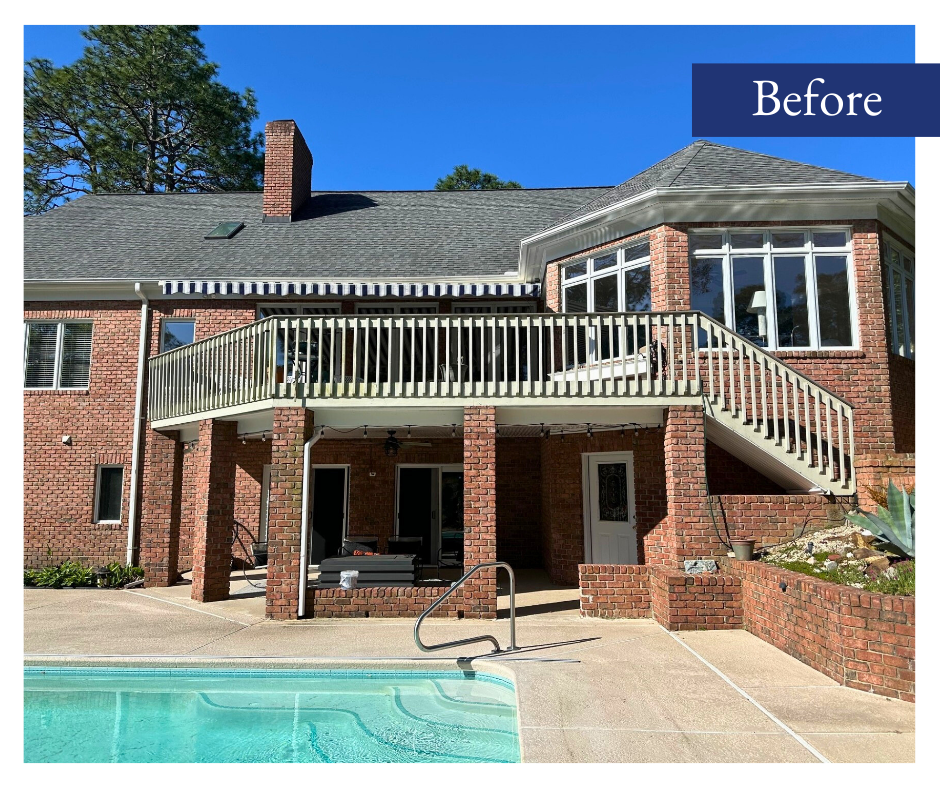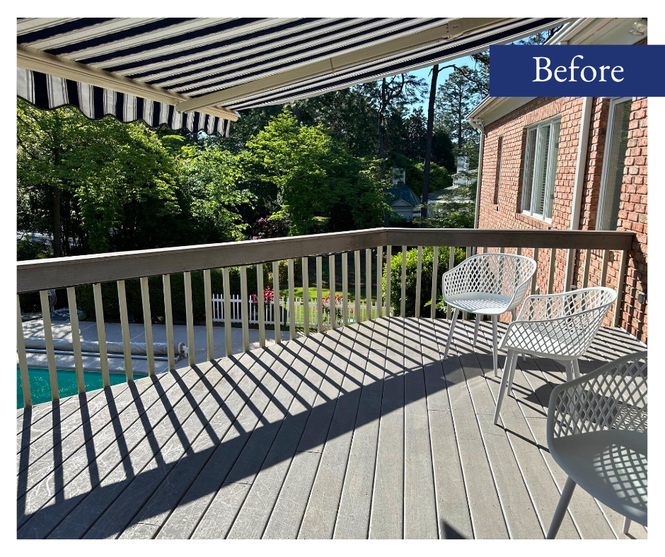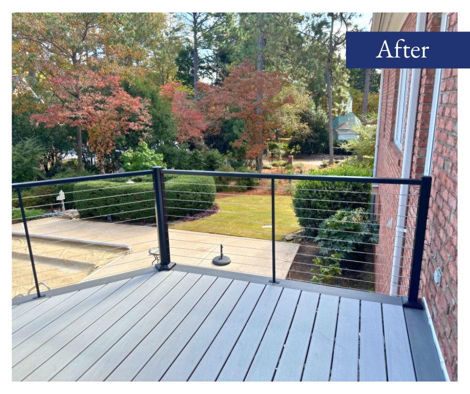 We recently completed a deck renovation project in the heart of Pinehurst. This outdated deck was transformed into a modern outdoor oasis.
