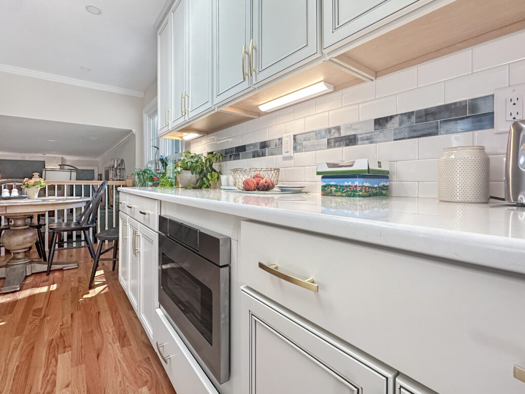 The space came together beautifully! They drastically increased their storage with cabinets all around. The island and bar added more seating so they could be together during cooking and meal times, and even though we removed a window, the space is much lighter and brighter. Not only is it a timeless design, but most importantly, it is now a more functional and enjoyable space for the family.