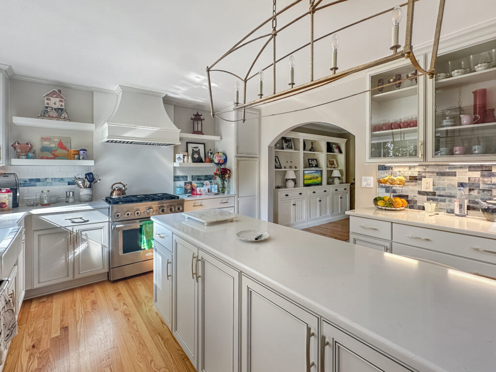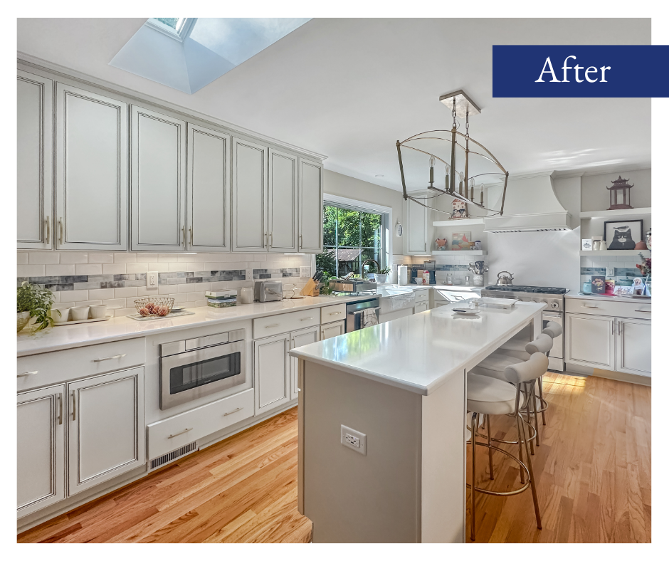 We had the pleasure of doing a multi-phase project involving multiple main living areas in a Raleigh area home built in 1970! While many similar homes in this community are being torn down and replaced with new construction, these homeowners chose to modernize their space while preserving the original character of the home and exterior. This project included modernizing and expanding the kitchen into an unused formal dining room, turning the unfinished attic space into a luxurious master suite, a hall bathroom renovation, relocating the laundry, and updates to the family room.