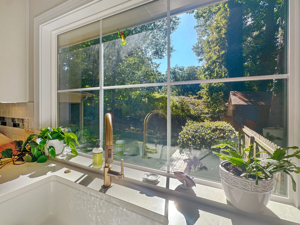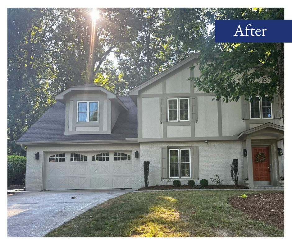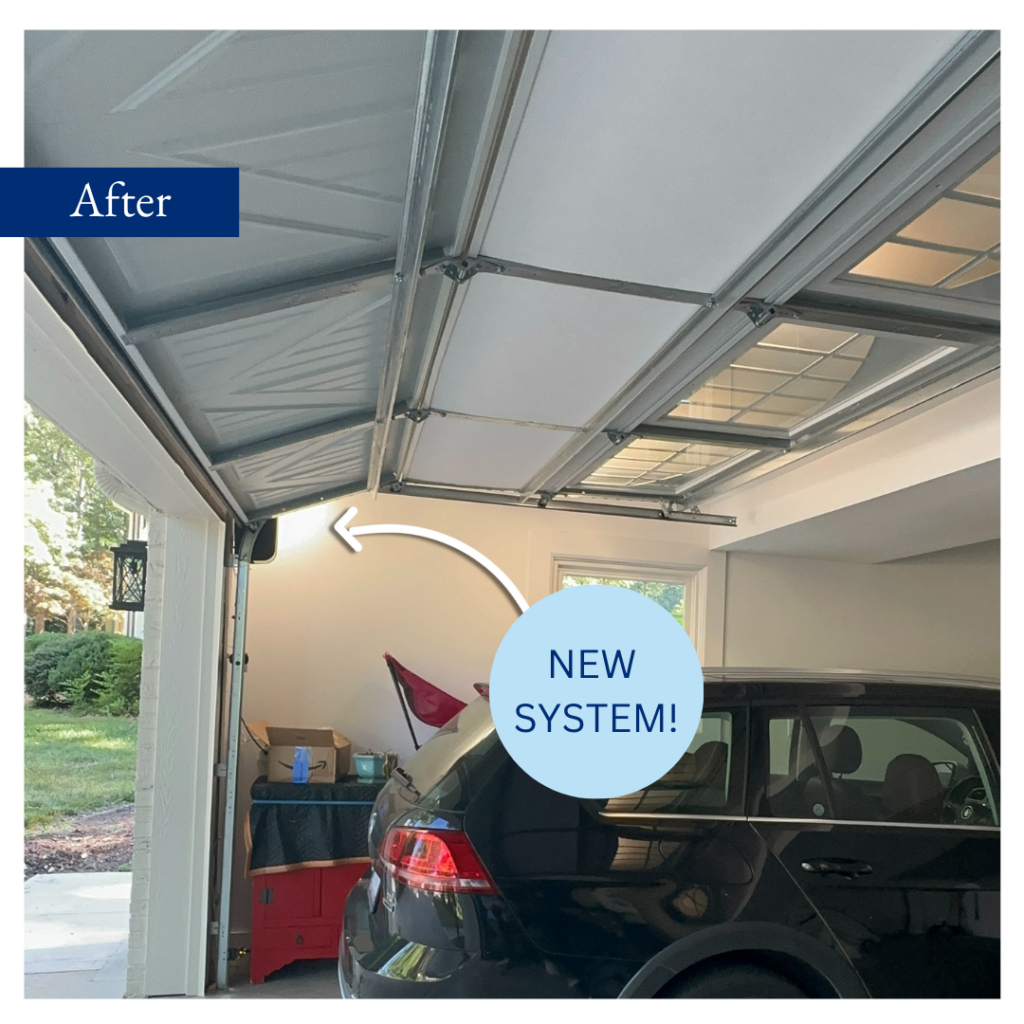 We updated the garage door to a motorized version with windows and details to complement the house. One challenge was that the garage door motor would not fit over the car as it does in a typical modern garage space. We were able to find a garage door system that mounts to the side of the garage, and it was a perfect solution for this space!